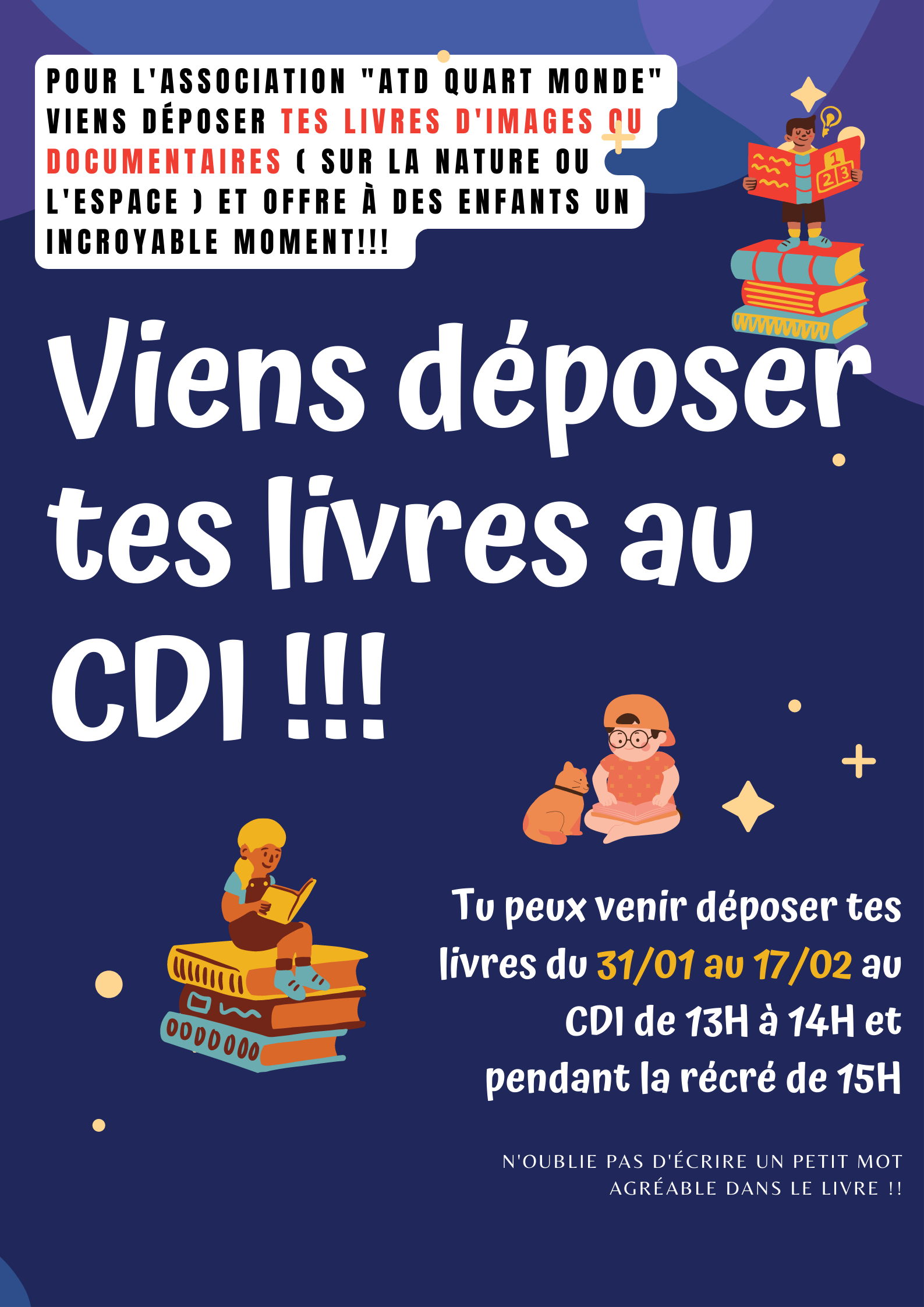 "viens déposer tes livres" pour une association reconnue par l’État. Les livres peuvent être (...)